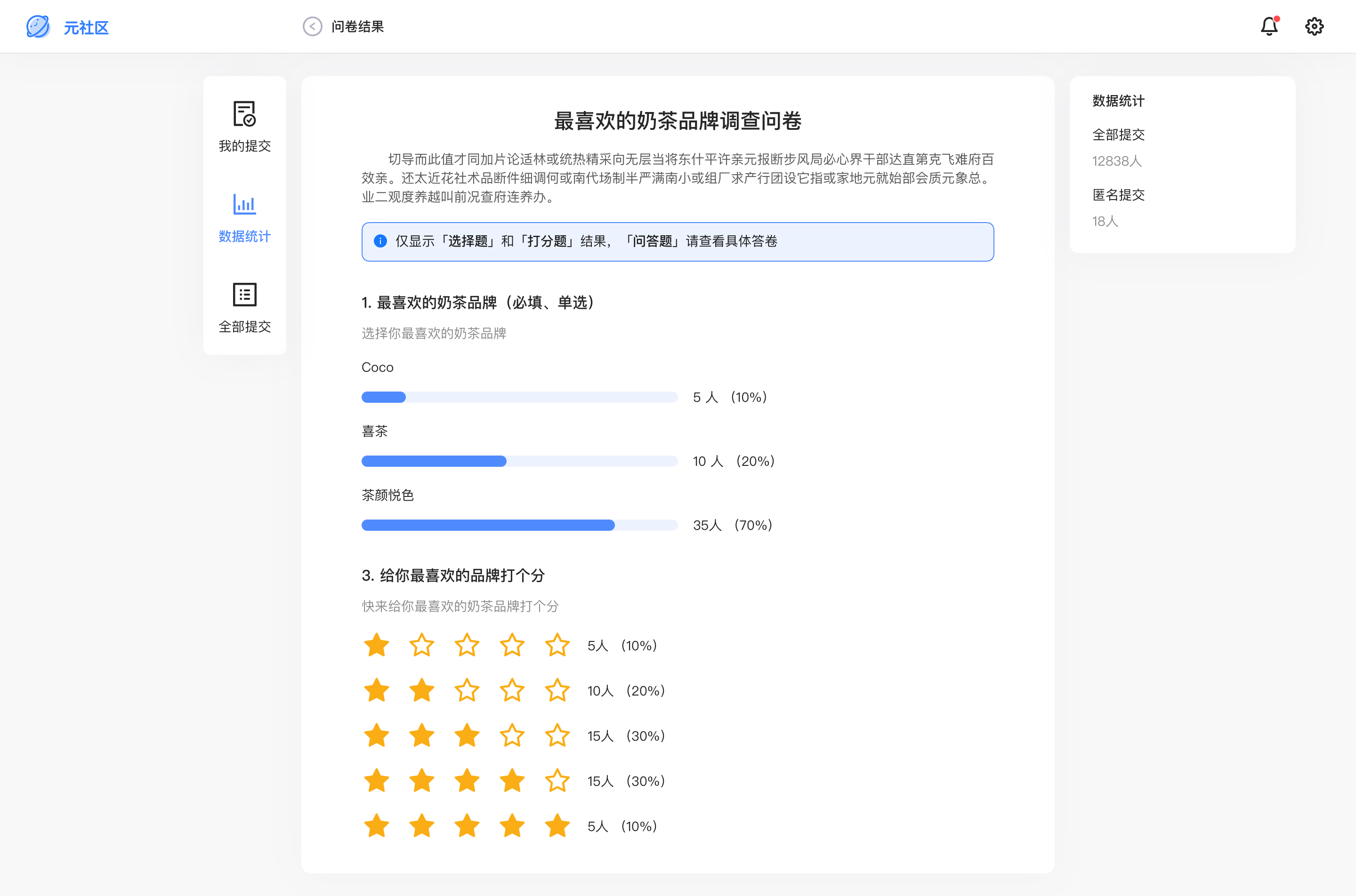 在功能层面,PC 端问卷支持多种常见题型,包括单选、多选、文本问答和打分题,能够覆盖满意度调查、意见征集、活动反馈等多种实际需求。同时,运营人员可以灵活配置问卷截止时间、访问权限、结果查看权限以及匿名填写选项,在保证数据有效性的同时,更好地保护用户隐私,提升真实反馈的意愿。