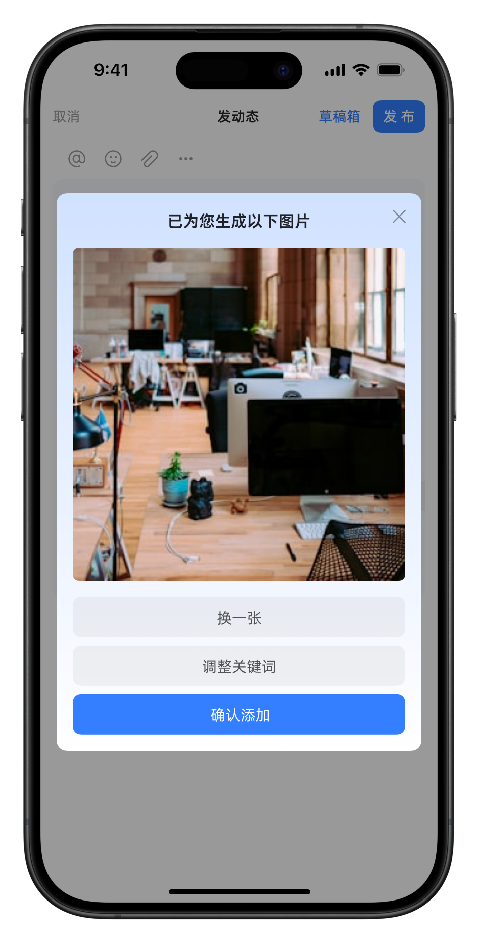在社区内容创作过程中,优质配图能够有效提升内容的吸引力与表达效果。短说AI模块提供了智能配图功能,用户在编辑正文时可一键生成与内容相匹配的图片。AI会基于文本语义自动推荐合适的配图,用户可直接插入使用;若对结果不满意,还可通过点击【换一张】获取更多图片,或通过【调整关键词】优化生成效果,帮助用户轻松完成图文搭配,提升整体内容质量。